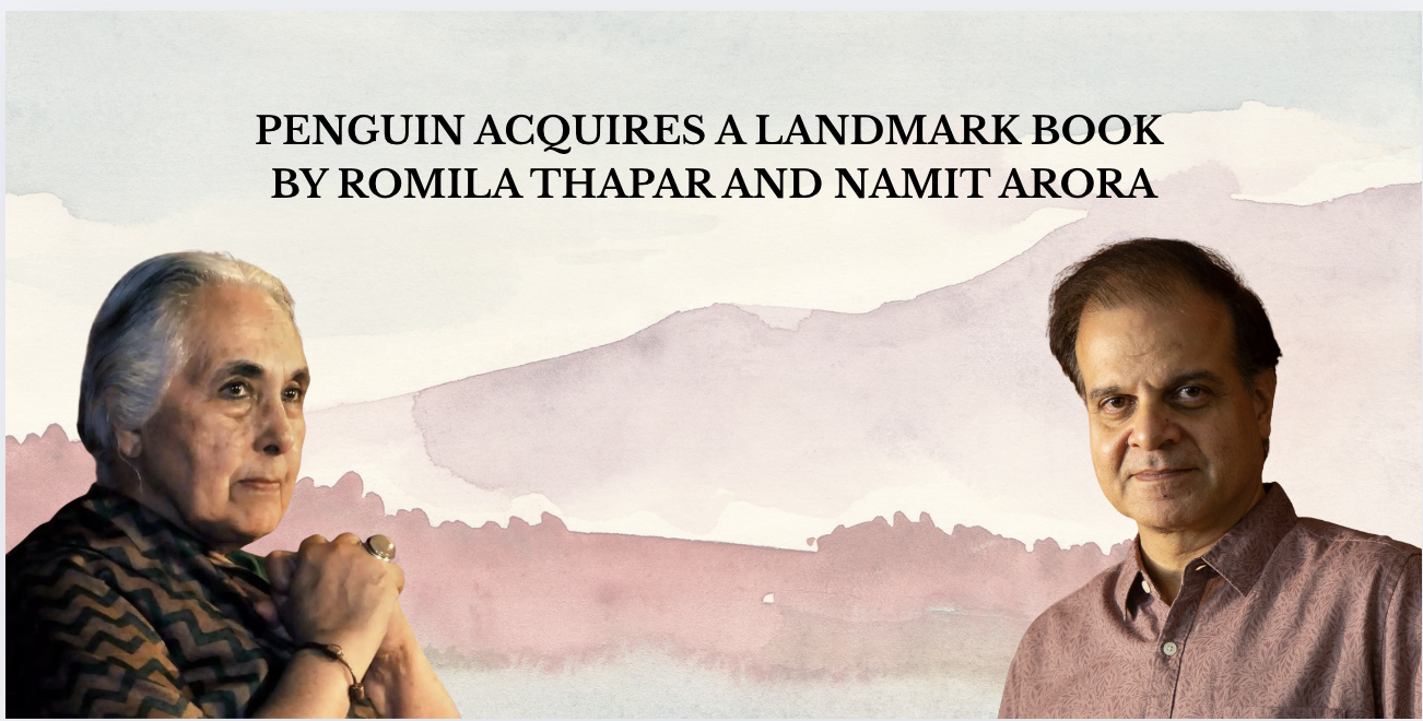 Penguin Random House India is proud to announce the acquisition of Speaking of History: Conversations About India’s Past and Present, a landmark contribution to the public discourse on Indian history. This insightful work brings together two compelling voices of our time—eminent historian Romila Thapar and acclaimed writer Namit Arora—in a rich and engaging dialogue. The book will be published in November 2025 under the Allen Lane imprint.